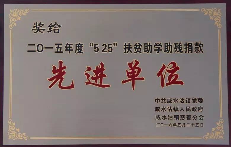 多宝电竞物联获2015年度“5·25”扶贫助学助残捐款先进单位称号