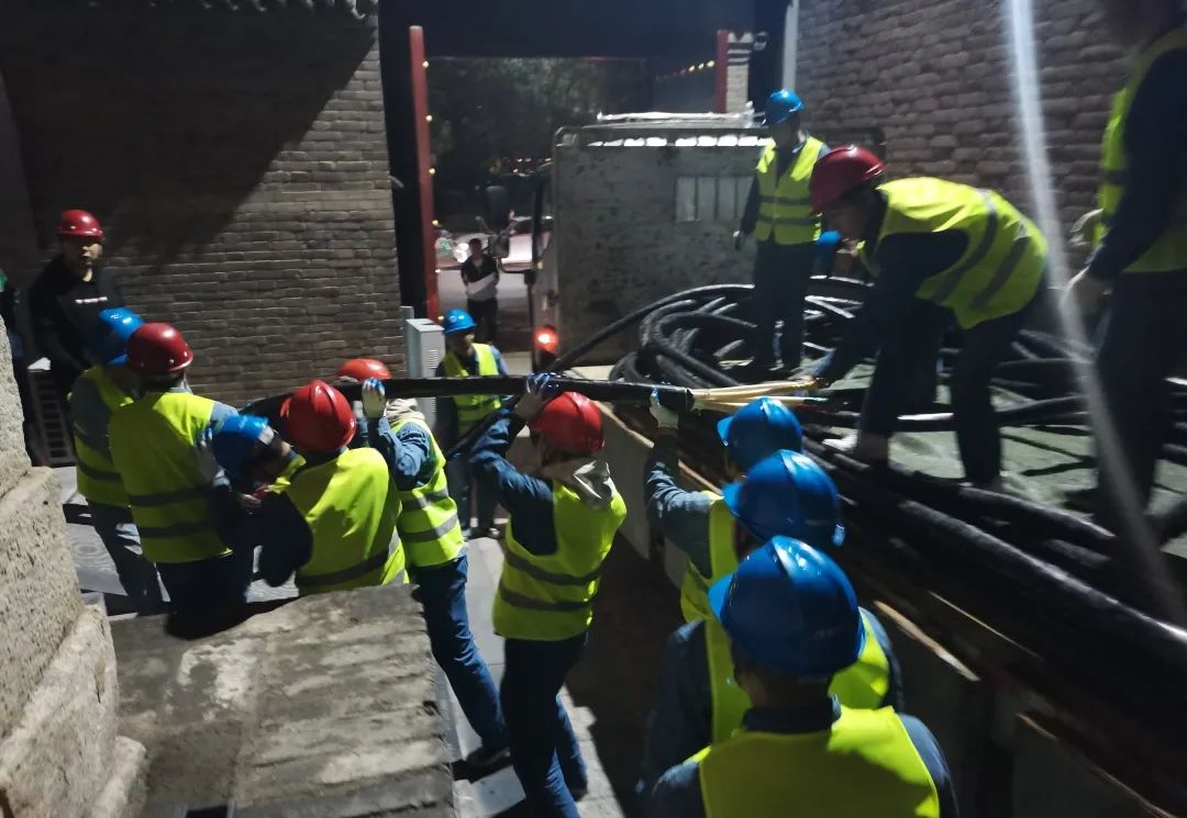 接到本次保电任务,多宝电竞物联提前周密部署,统筹安排人员,制定完善的保电方案,40余位工作人员连夜铺设电缆,奋战3天,现场调试设备,轮班值守。现场由24人组成的多宝电竞物联保电人员分为四小队及后勤保障组,细化分工,各小组人员全程坚守岗位,加强关键环节和点位的监控,随时应对活动现场供电突发情况,确保了此次丝绸之路国际电影节的顺利开幕。
