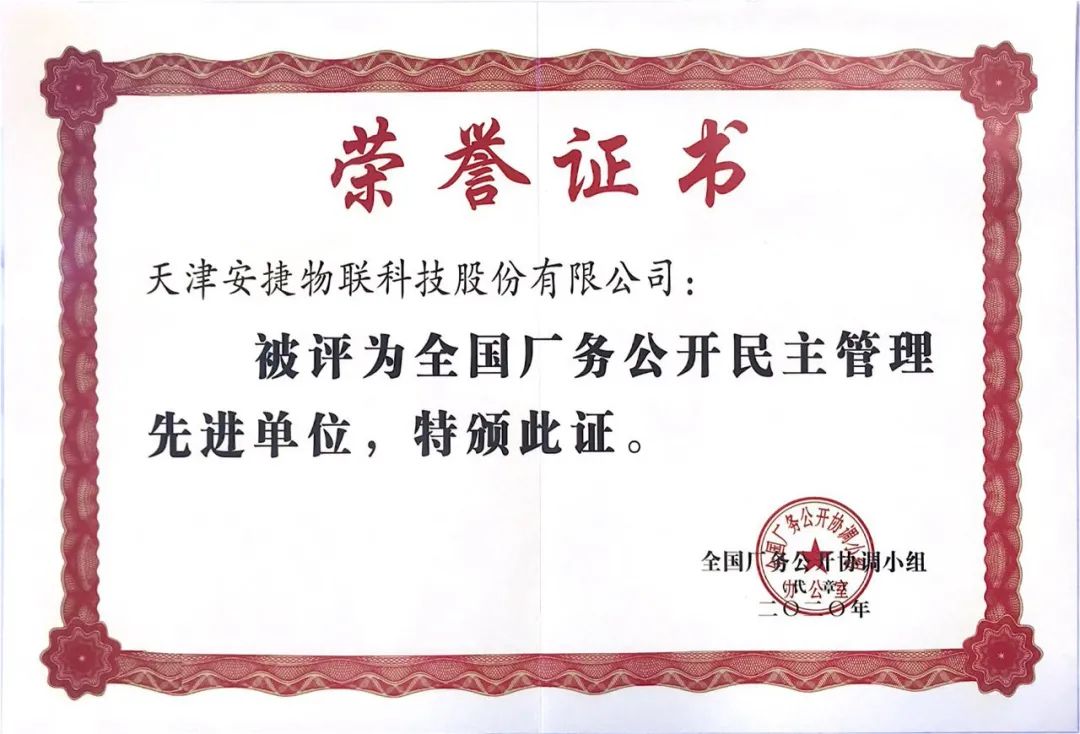 近日,天津多宝电竞物联科技股份有限公司被全国厂务公开协调小组授予“全国厂务公开民主管理先进单位”称号。