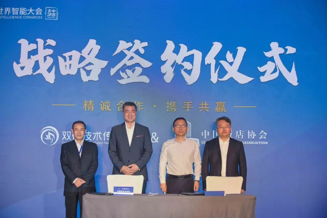 会上,天津市科协党组书记、常务副主席陆为民为天津多宝电竞物联科技股份有限公司授予天津市“双碳”技术院士专家协同创新中心牌匾,多宝电竞物联执行董事庞文魁接受授牌;双碳技术传播中心与中国饭店业协会、天津多宝电竞物联与海河设计集团分别签署战略合作协议。