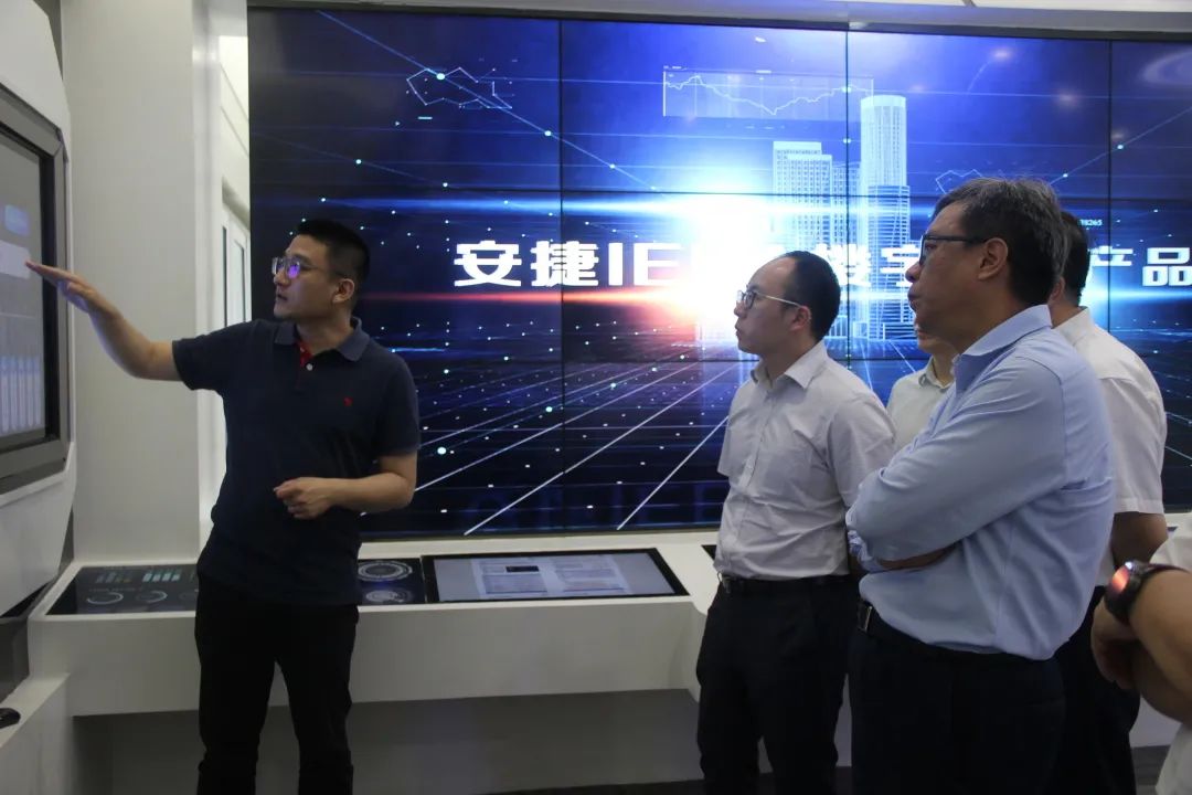 到访领导一行先后参观了多宝电竞物联展厅及调控中心,多宝电竞物联董事长刘柏呈详细讲解了由多宝电竞物联自主研发的能源路由器、碳管理平台、coral物联网系统及数字孪生等技术。
