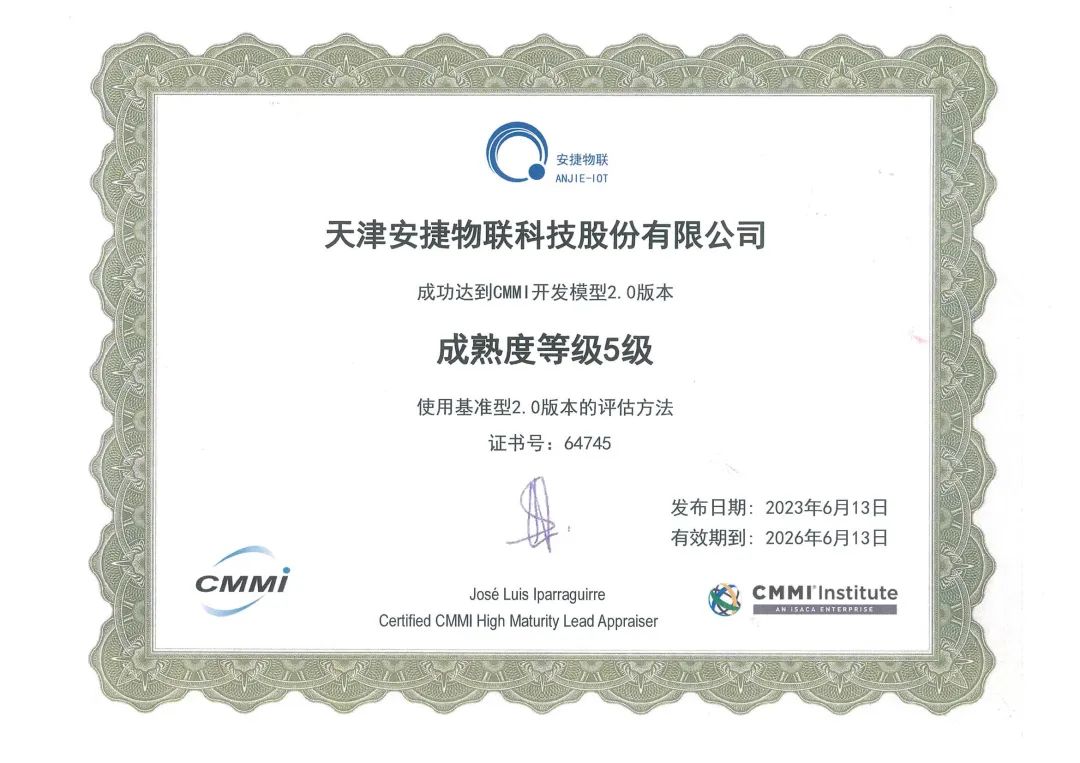 近日,多宝电竞物联顺利通过全球软件领域难度最大、规格最高的软件开发能力成熟度认证CMMI 5,并获CMMI研究院ISACA颁发的CMMI 5 V2.0认证证书。